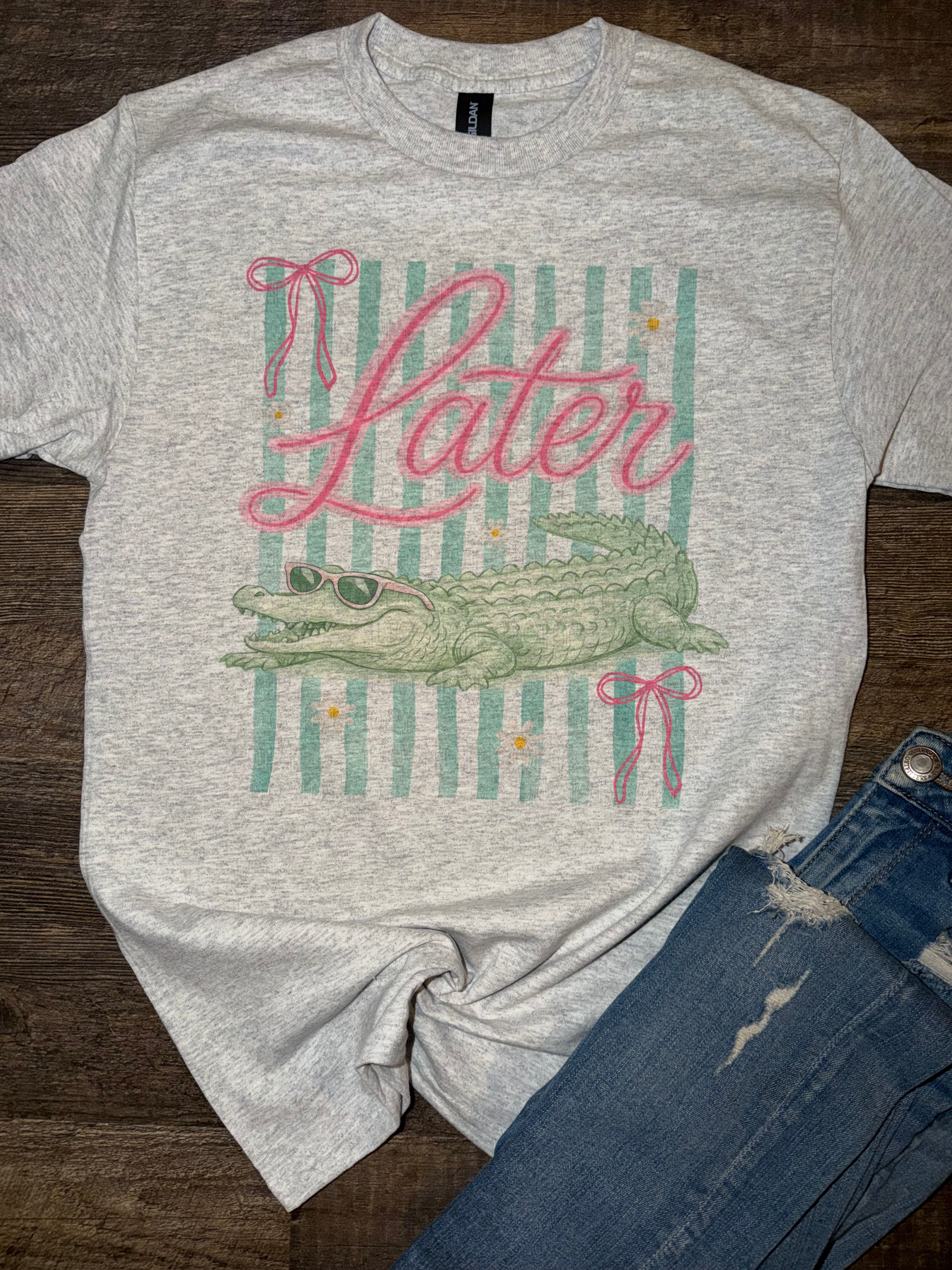 All Products › Later Gator Tee Image 1 of 1 Later Gator Tee from $20.00 These are ash grey unisex Gildan 50/50 t-shirts. Size: Select Size Small Medium Large XLarge XXLarge XXXLarge 4X 5X Add To Cart Added! These are ash grey unisex Gildan 50/50 t-shirts. Reviews Reviewer Name Review Date Star Rating Description Posted on Etsy Product Show More
